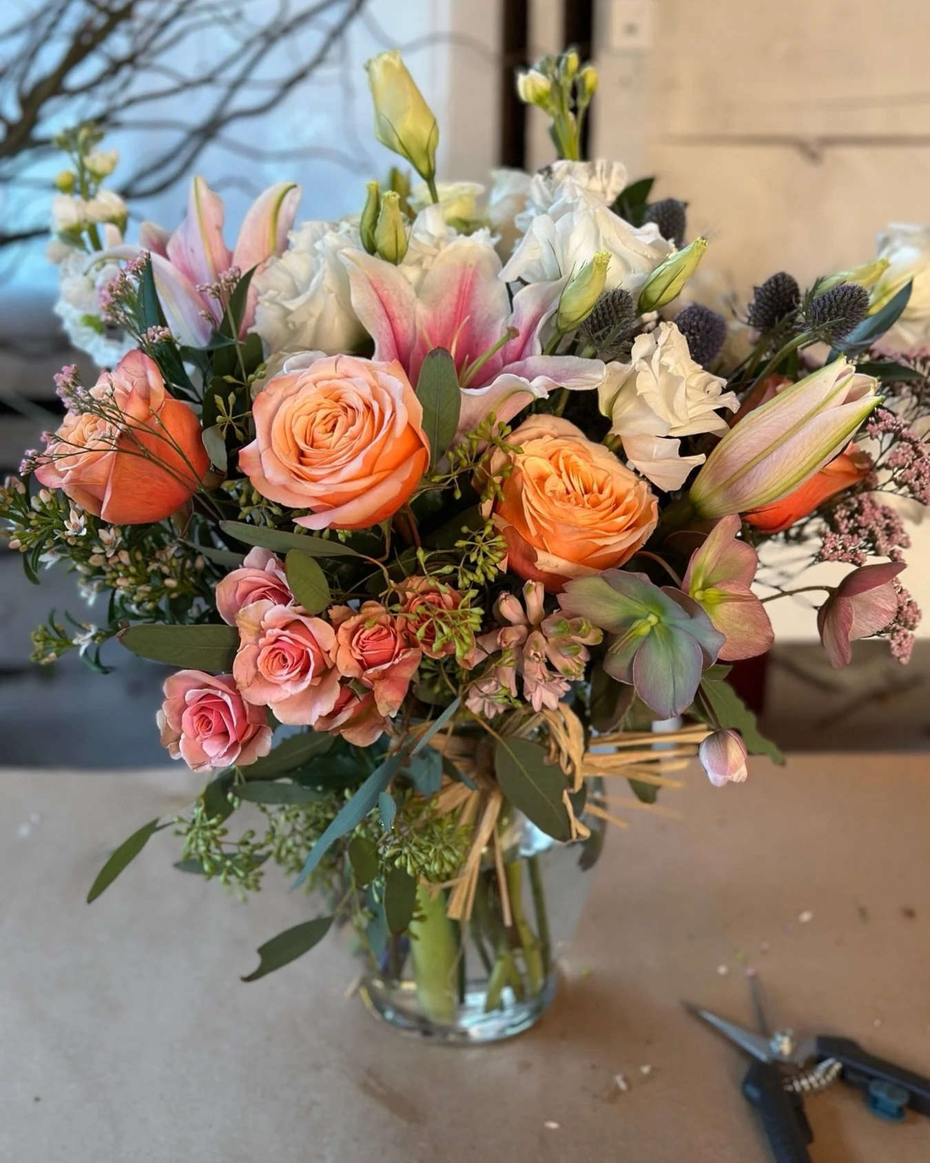 Bridal Bouquet. Getting ready at Cannery Pier Hotel. Photo by PowersStudios.com Astoria, Oregon.